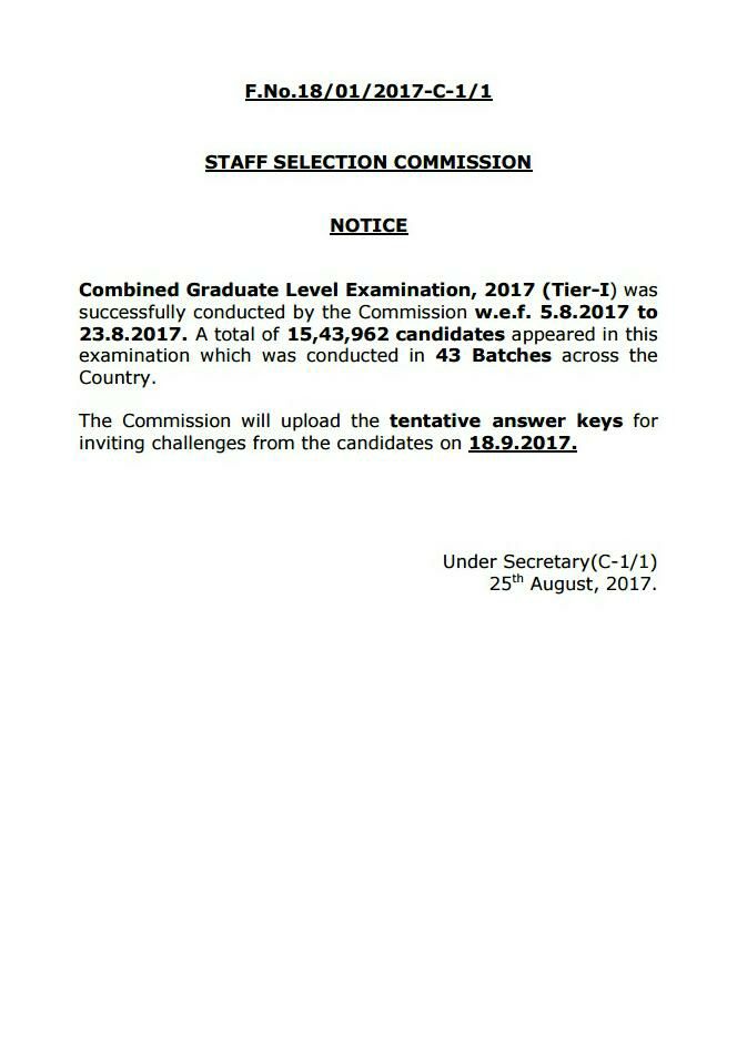 DATE OF SSC ANSWER KEY IS OUT